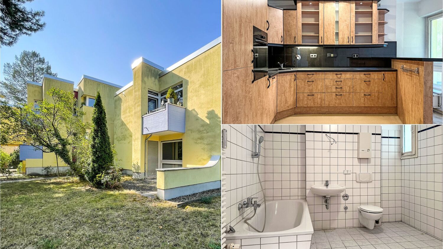 Die Anlage mit insgesamt 25 Wohneinheiten auf einem ca. 4.312 m² großen Grundstück grenzt direkt an den Düppeler Forst und liegt nur wenige Meter von der Königsstraße und ein paar Gehminuten vom Wannseeufer entfernt. Das Haus teilt sich in Erdgeschoss, Hochparterre, Obergeschoss sowie Vollkeller auf. In diesem Hausaufgang befinden sich insgesamt vier Wohneinheiten, die sich aufteilen in zwei Drei-Zimmer- und zwei Vier-Zimmer-Wohnungen mit Wohnungsgrößen zwischen ca. 95 m² bis ca. 119 m² Wohnfläche. Die zum Verkauf angebotene Wohnung befindet sich im Erdgeschoss rechts. Sie teilt sich auf in eine große Wohnküche mit Einbauküche und Zugang zur westlich ausgerichteten Gartenterrasse, zwei weitere Zimmer, jeweils mit Zugang zur östlich und westlich ausgerichteten Terrasse, ein großes Badezimmer mit Badewanne und Stellplätzen für Waschmaschine und Wäschetrockner sowie einen Flur mit integriertem Schuhschrank. Die Terrassen sind per Sondernutzungsrecht dieser Wohneinheit fest zugeordnet. Die Wohnfläche der Eigentumswohnung beträgt ca. 119 m² inklusive hälftiger Terrassenflächen und ohne Terrassen ca. 91 m². Die Raumhöhe beträgt ca. 2,60 m.