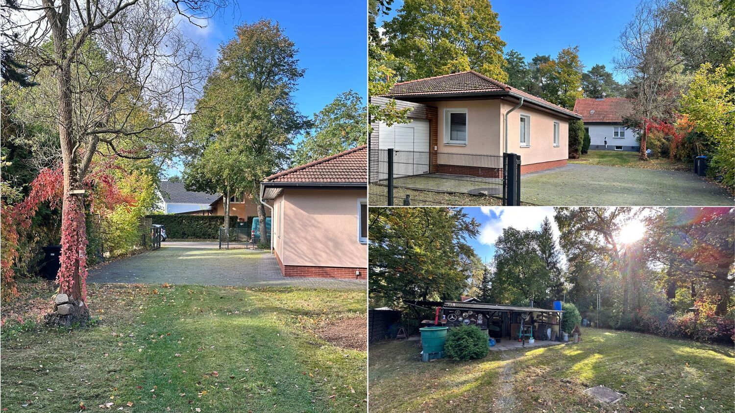 Auf dem Grundstück befindet sich eine an den Bungalow angeschlossene Garage sowie ein Geräteschuppen.