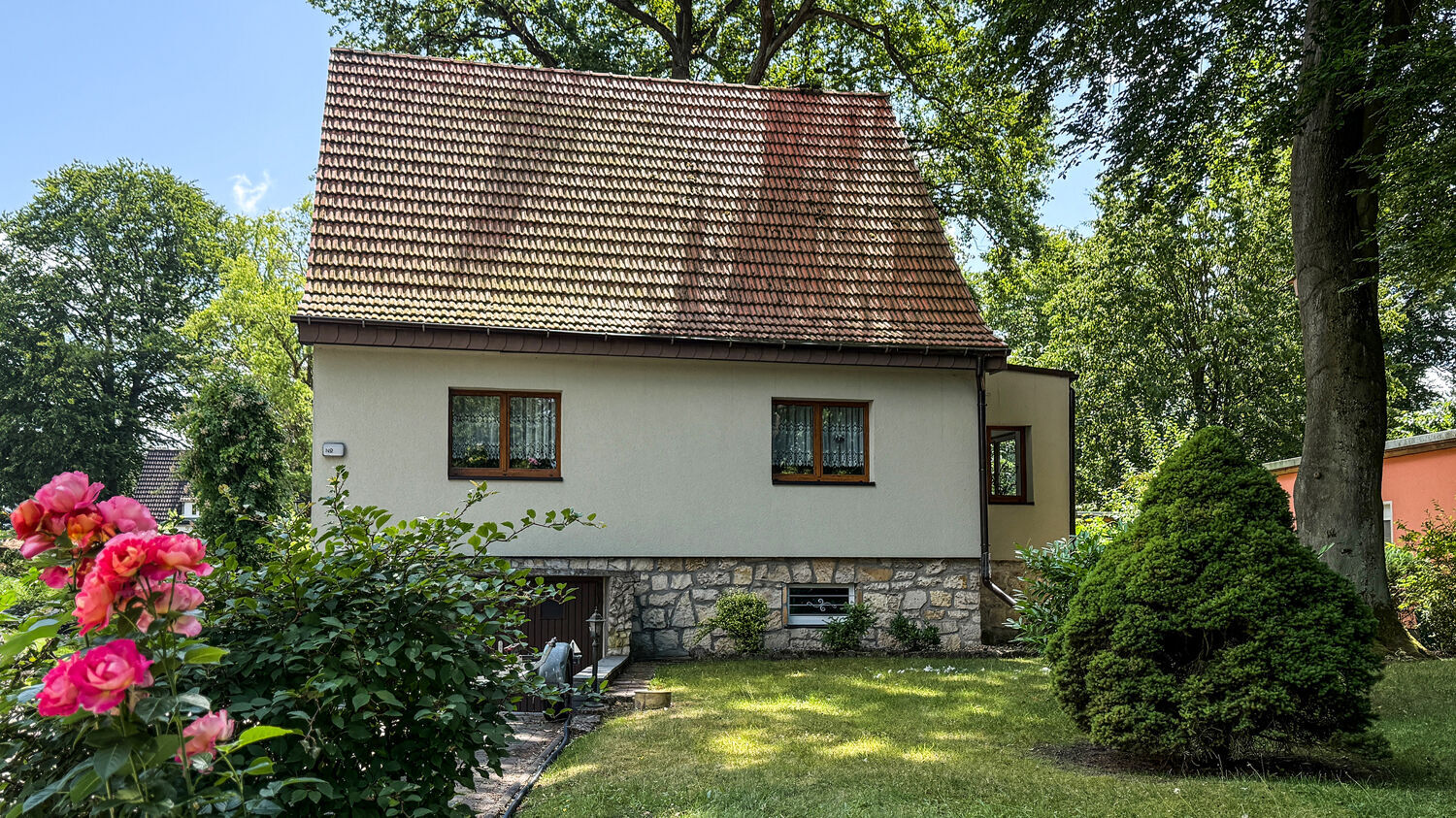 Es handelt sich um ein charmantes Einfamilienhaus auf einem ca. 924 m² großen Gartengrundstück in der beliebten Vogelsiedlung in Schönwalde-Glien im Ortsteil Siedlung.