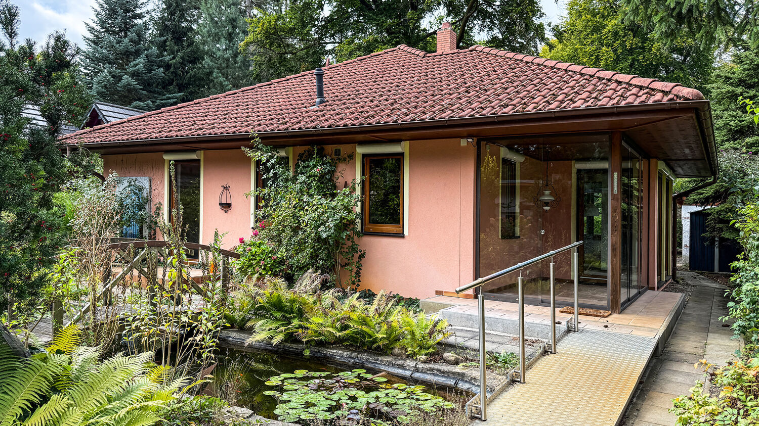Das Wohnhaus wurde 2005 von der Firma Bien-Zenker errichtet, teilt sich in Erdgeschoss und Dachboden auf und befindet sich auf einem ca. 918 m² großen Gartengrundstück mit kleinem Zierteich, Gartenhaus, Gerätehaus, Geräteschuppen und Carport.