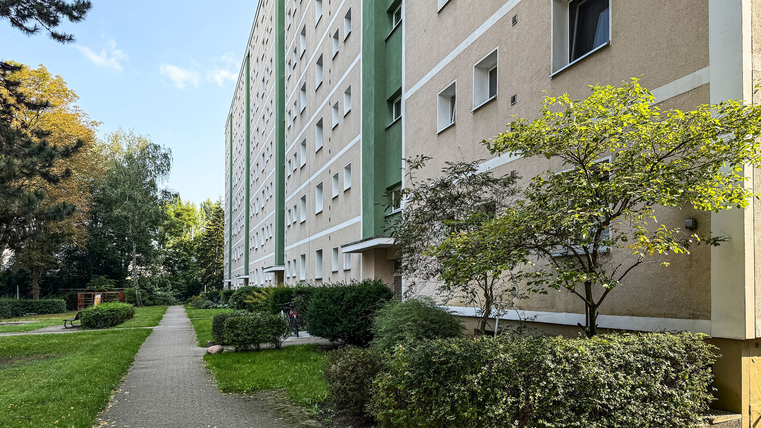 Das Wohnhaus teilt sich auf in Hochparterre, erstes bis viertes Obergeschoss sowie Kellergeschoss und gehört zu einer WEG mit insgesamt 102 Wohneinheiten, welche sich auf sechs Häuser aufteilen.