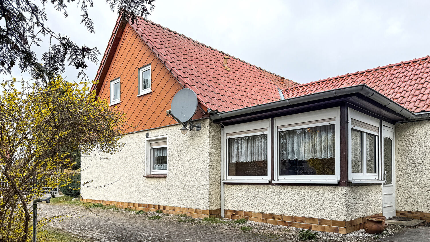Die in den 1930er Jahren in Massivbauweise errichtete Doppelhaushälfte bietet viel Gestaltungsspielraum und ein 836 m² großes Gartengrundstück. Sie befindet sich in der beliebten Handwerkersiedlung im Falkenseer Stadtteil Finkenkrug und teilt sich in Erdgeschoss, Dachgeschoss und Teilkeller auf.